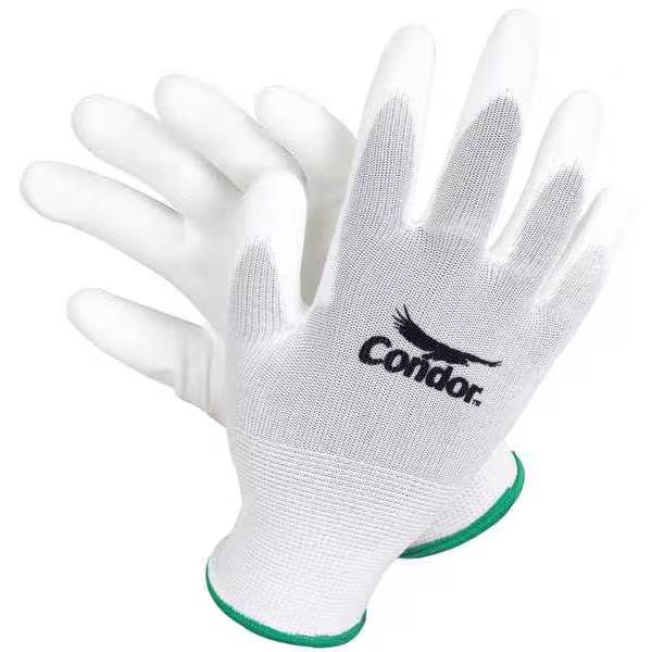 Coated Gloves, Polyurethane Coating, Smooth Finish, Abrasion Level 3, White, M, PR