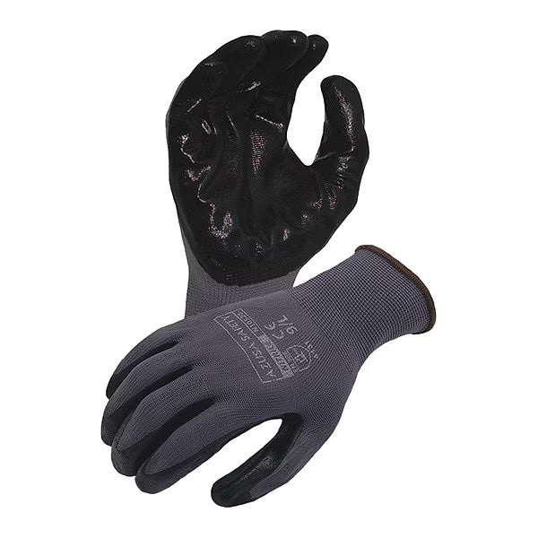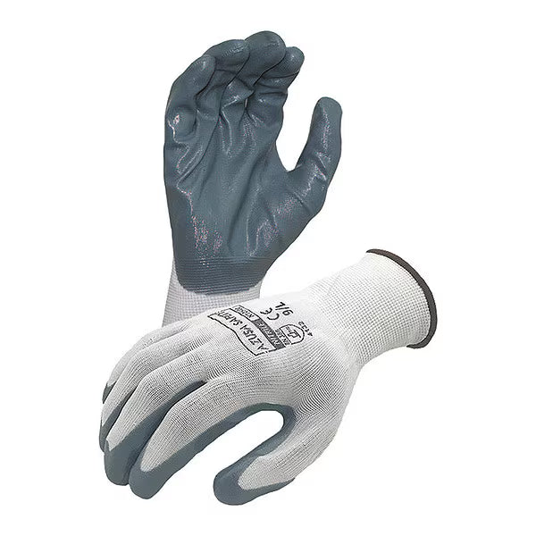 Coated Work Gloves, Nitrile, Flat, Palm, White/Grey, S 1 PR