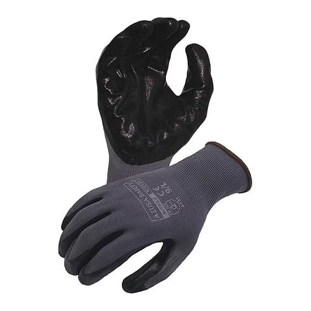 Flat nitrile palm coating provides good abrasion resistance, puncture resistance and enhanced grip in wet, dry and oily conditions and are resistant to liquid absorption